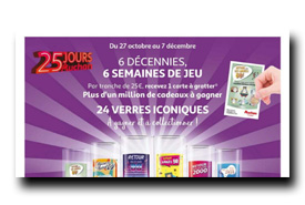 Pour tout passage en caisse Auchan d'un montant de 25€, une carte 25 jours Auchan à gratter est remise. Pour chaque tranche de 25€ (3 cartes max par passage en caisse) c'est une chance de gagner.